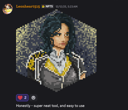 - Click the button to upload pixel art (note there is a pixel max)